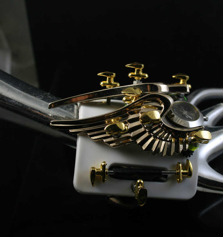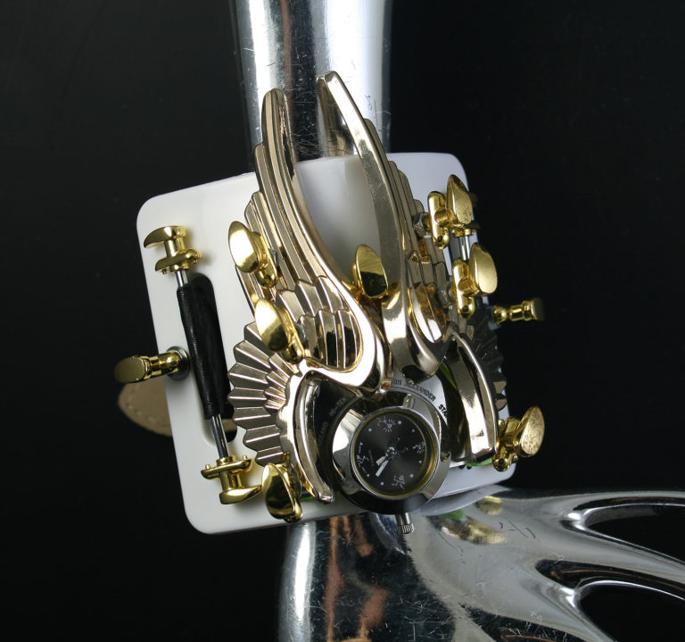 Unisex, handmade modern Steampunk watch Hi Tek Alexander, with metal gold wings.